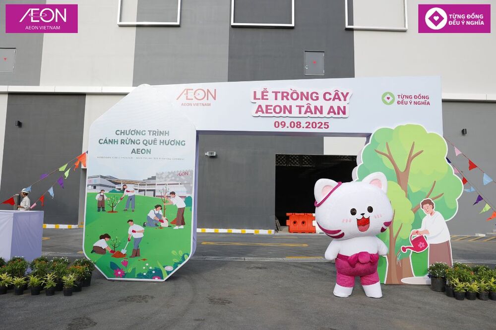 🌱 Vào ngày 9 tháng 8 năm 2025, AEON Việt Nam đã tổ chức Lễ Cây trồng với chủ đề Rừng quê hương AEON tại AEON Tân An. Đây là một phần của loạt các hoạt động truyền thống trước lễ khai trương. AEON Tân An là trung tâm mua sắm đầu tiên ở khu vực đồng bằng sông Cửu Long, dự kiến sẽ chính thức khai trương vào tháng 9 năm 2025.